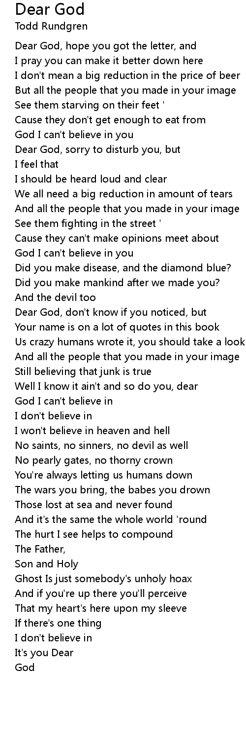 Dear God, hope you got the letter, and |