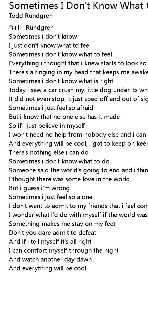 | Sometimes i don' t know | |