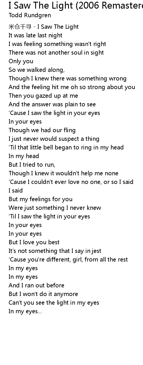 | ' Til I saw the light in your eyes | |