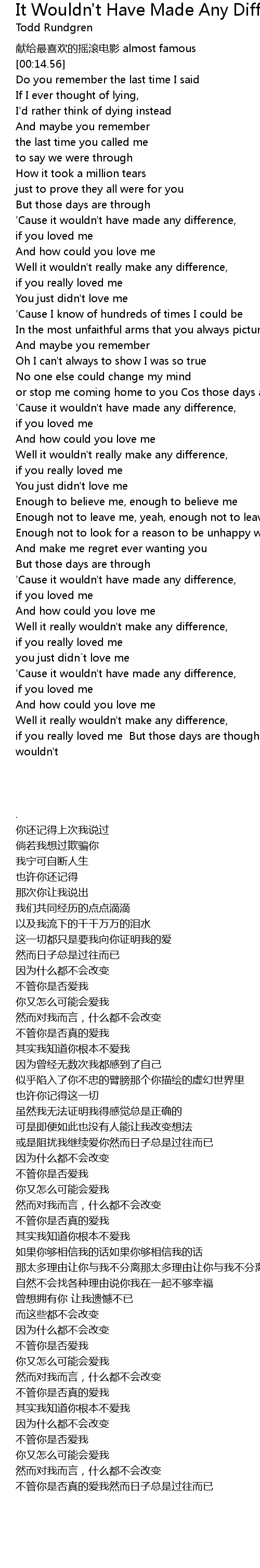 | [00:02.05] | 献给最喜欢的摇滚电影 almost famous |