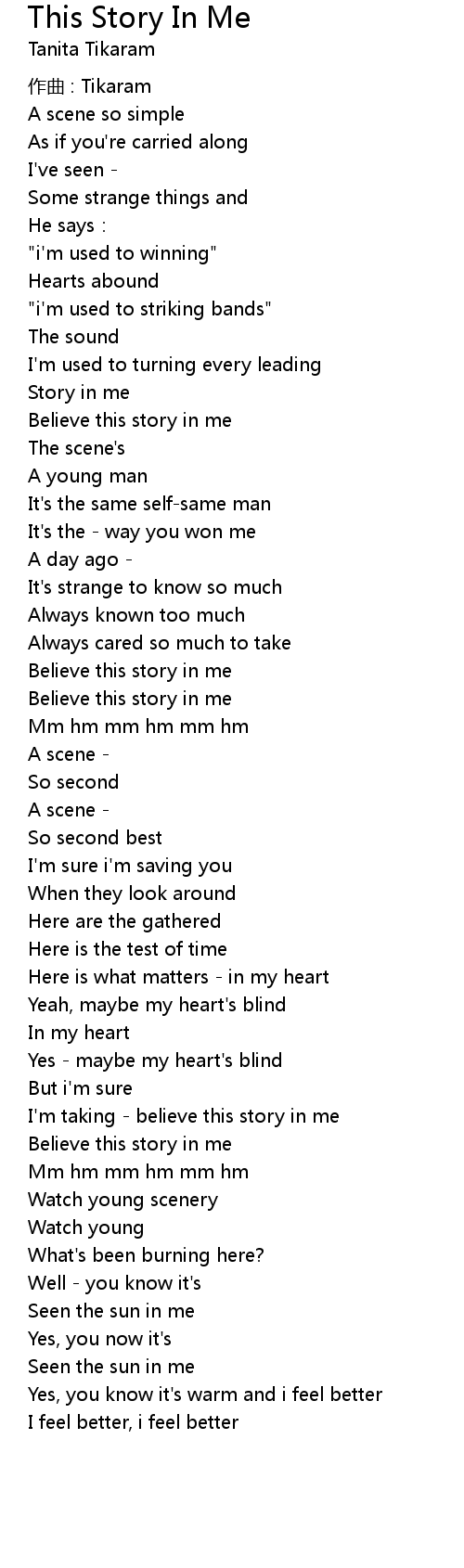 | Believe this story in me | |