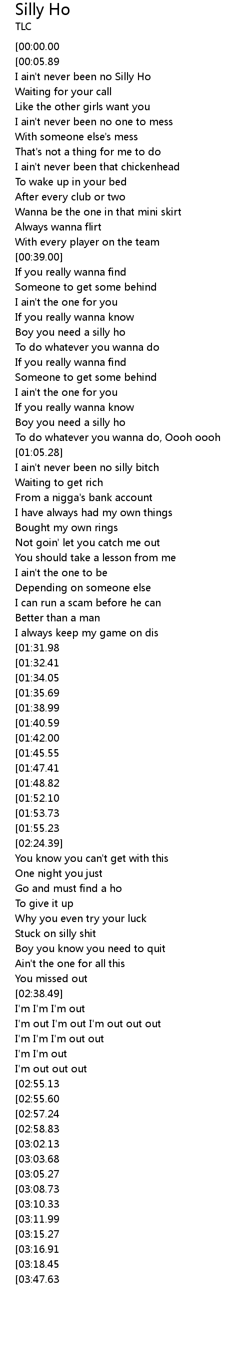 | [04:01.55][00:00.00] | TLC Silly Ho |