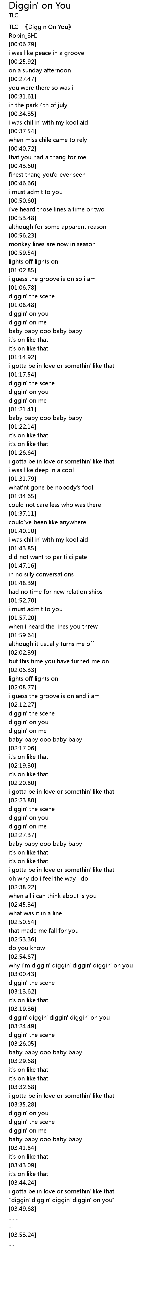 | [00:02.47] | TLC Diggin On You |