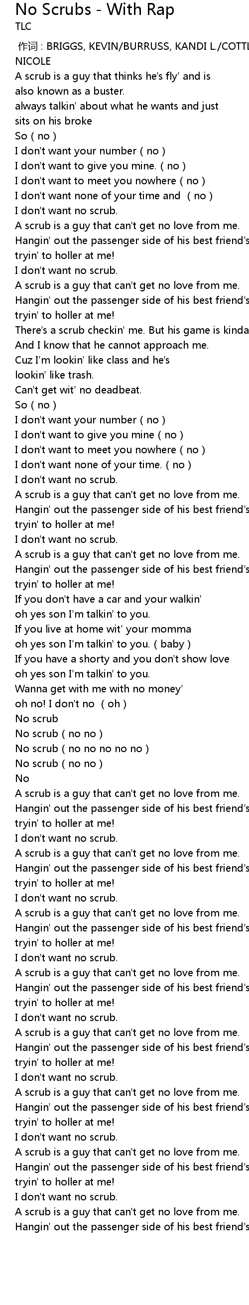 | [03:19.00] | A scrub is a guy that can't get no love from me. |
