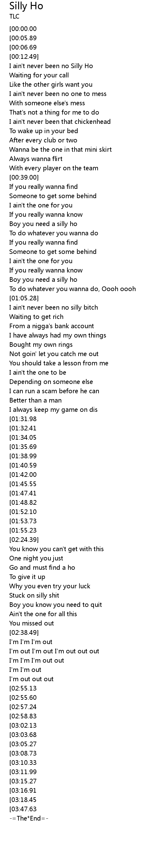 | [04:01.55][00:00.00] | TLC Silly Ho |
