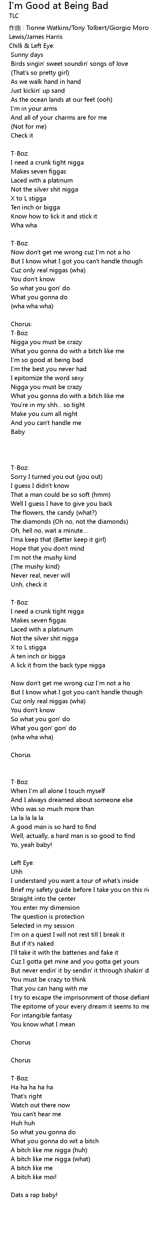 | 作曲 : Tionne Watkins/Tony Tolbert/Giorgio Moroder/Lisa "Left Eye" Lopes/Terry Lewis/James Harris | |