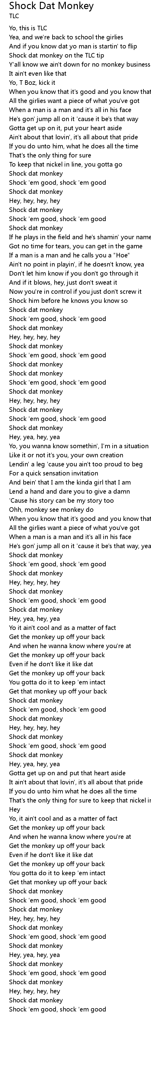 Shock dat monkey on the TLC tip |