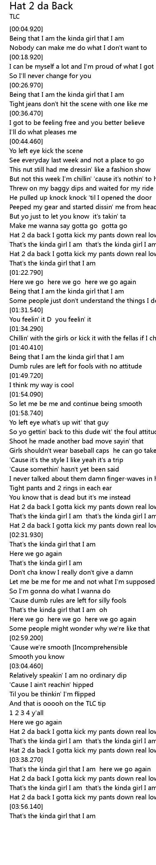 Hat 2 da back I gotta kick my pants down real low |