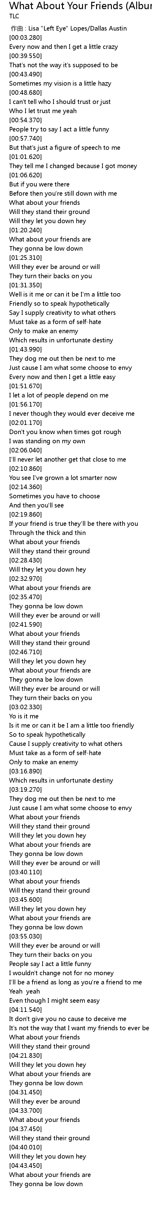| [00:00.00] | 作曲 : Lisa "Left Eye" Lopes/Dallas Austin |