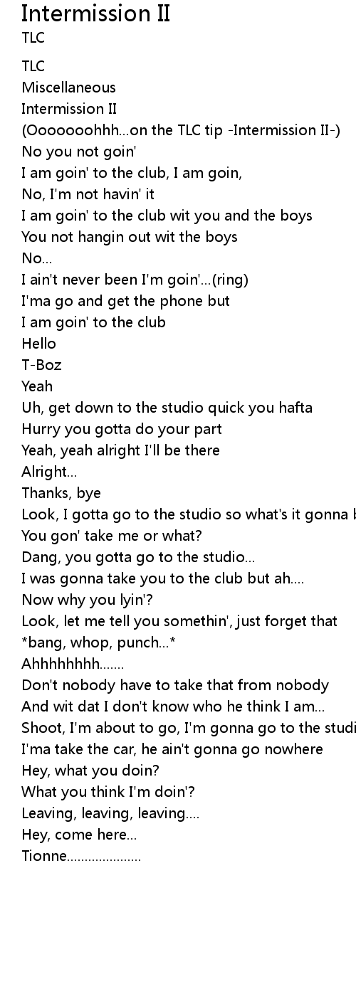 (Ooooooohhh...on the TLC tip -Intermission II-) |