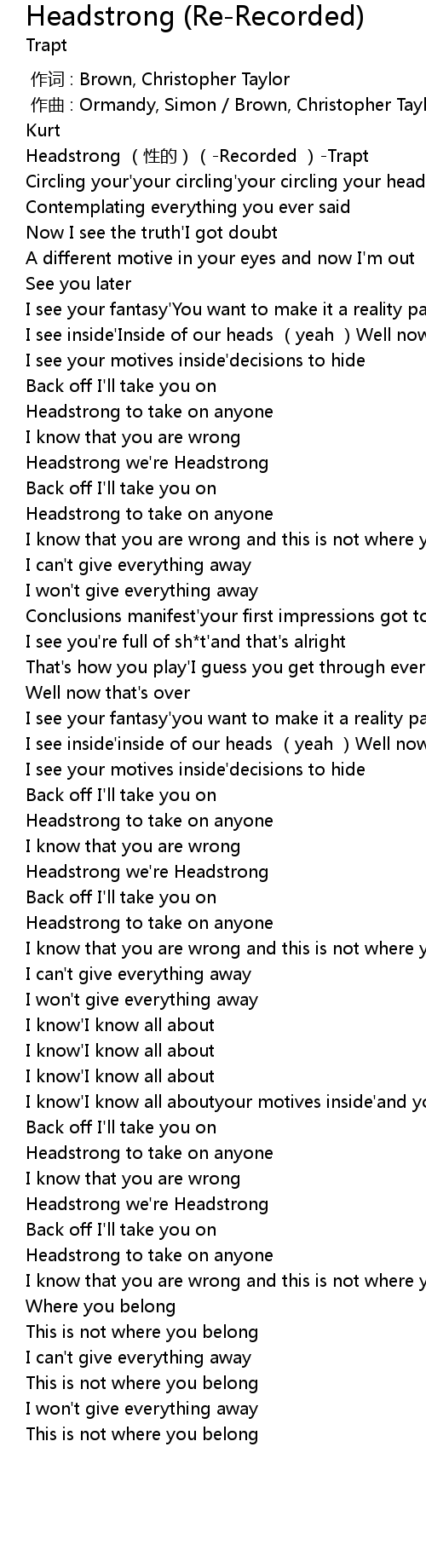 | [00:00.00] | Headstrong xìng de Recorded Trapt |
