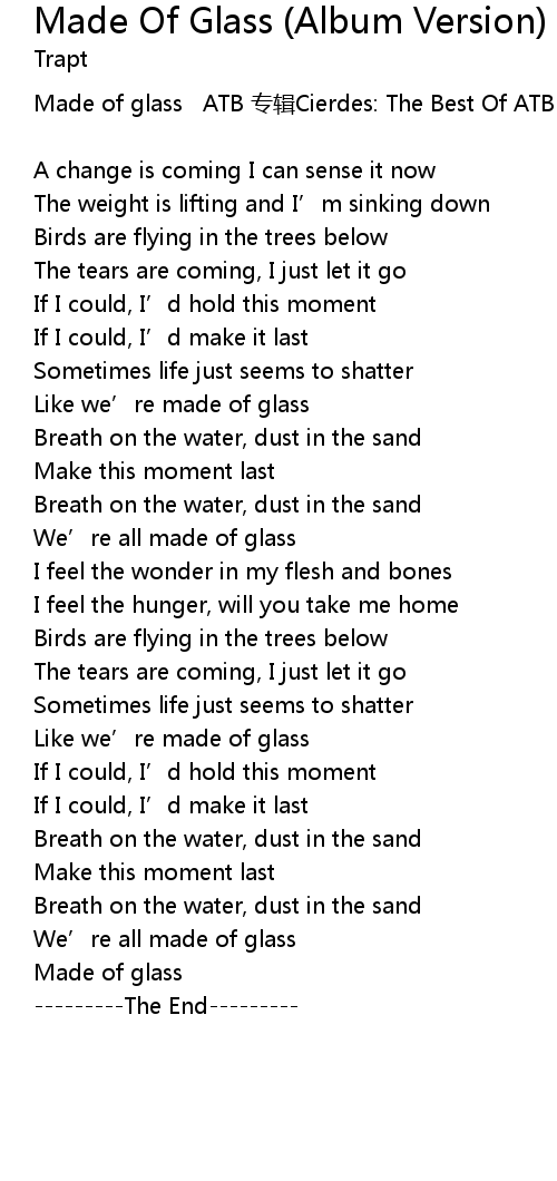 | Made of glass ATB 专辑Cierdes: The Best Of ATB (CD2: Vocal) | |