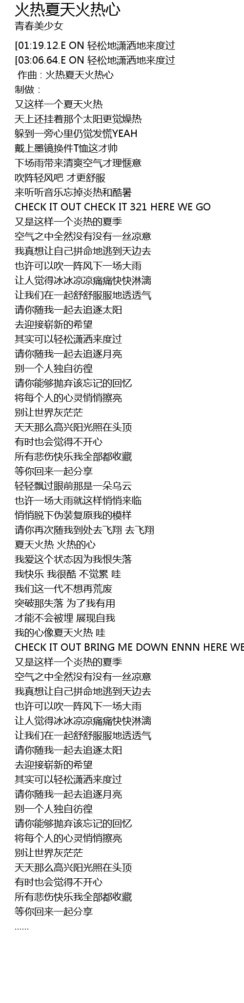 | [02:03.40] | 夏天火热 火热的心 |