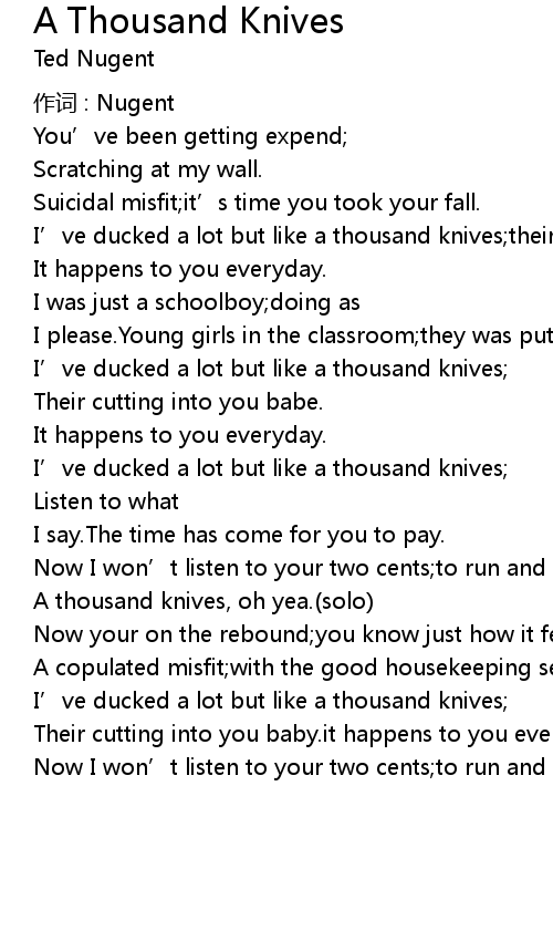 | A thousand knives, oh yea.(solo) | |