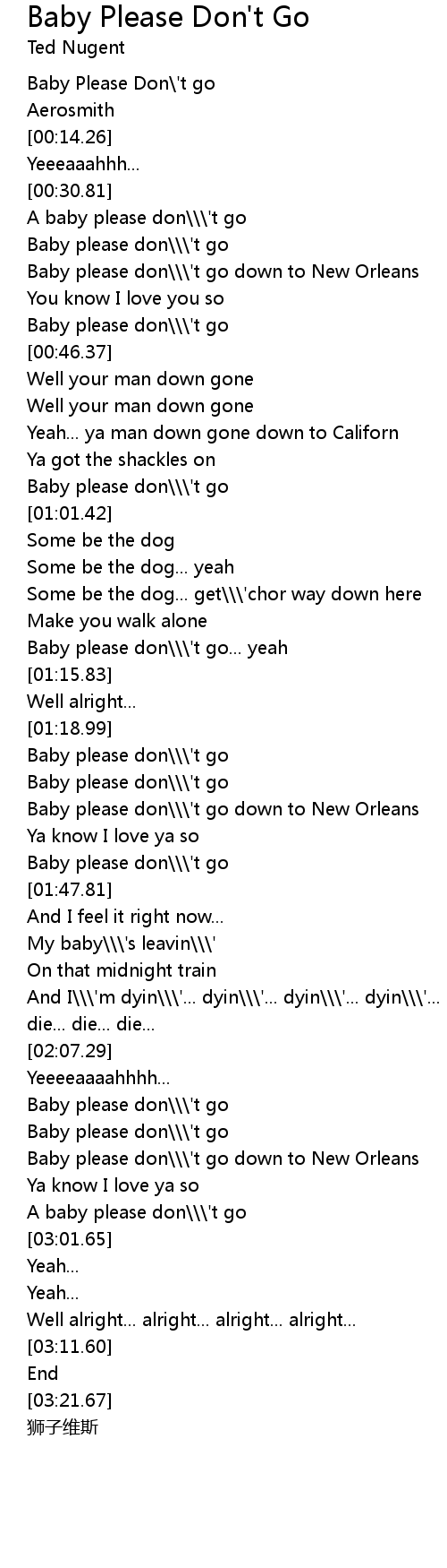 | [01:36.69] | Baby please don' t go |