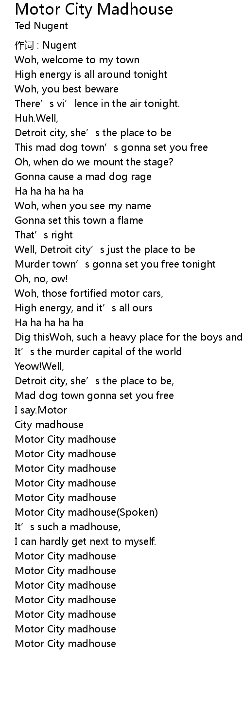 | Song | Motor City Madhouse |