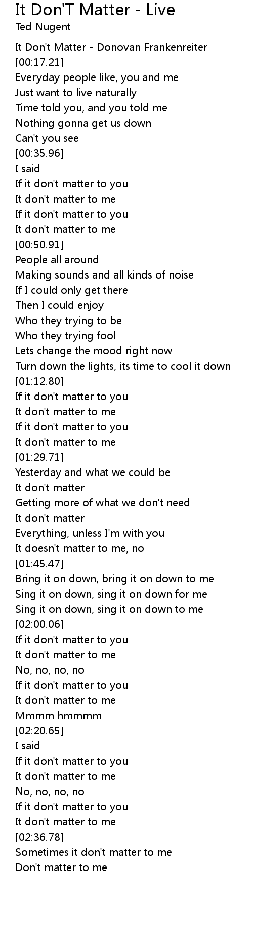 [00:03.07] It Don't Matter - Donovan Frankenreiter
