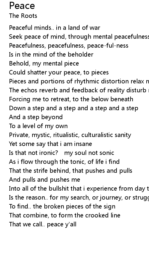 | Peacefulness, peacefulness, peace-ful-ness | |