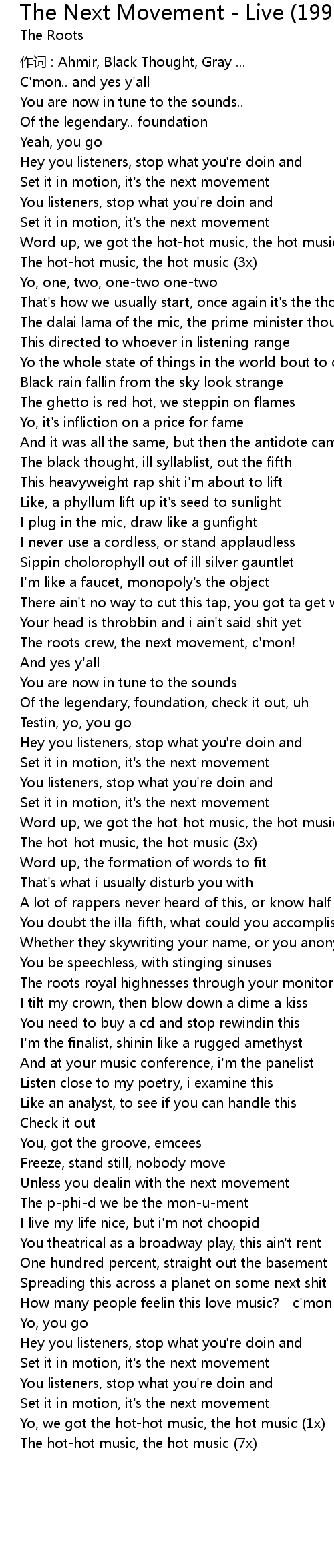 | 作词 : Ahmir, Black Thought, Gray ... | |