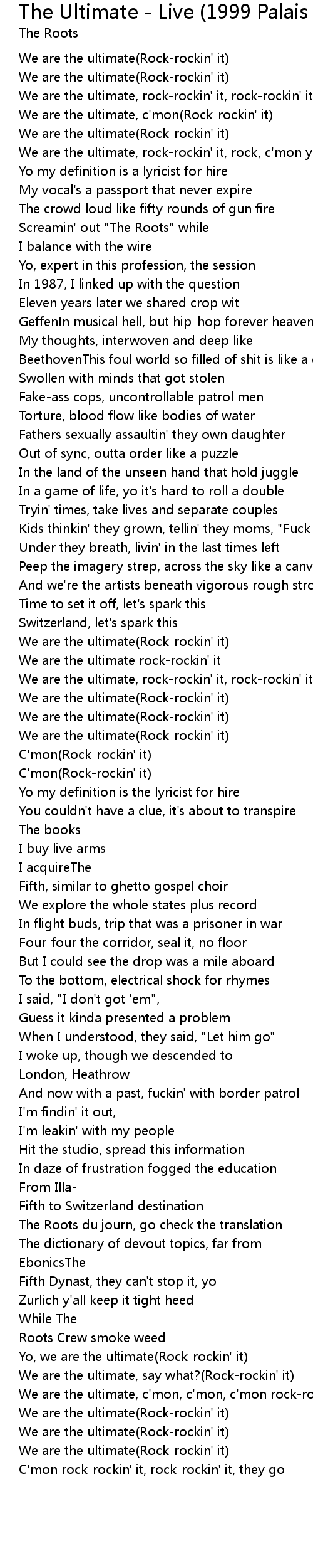 We are the ultimate, rock-rockin' it, rock, c'mon y'all |