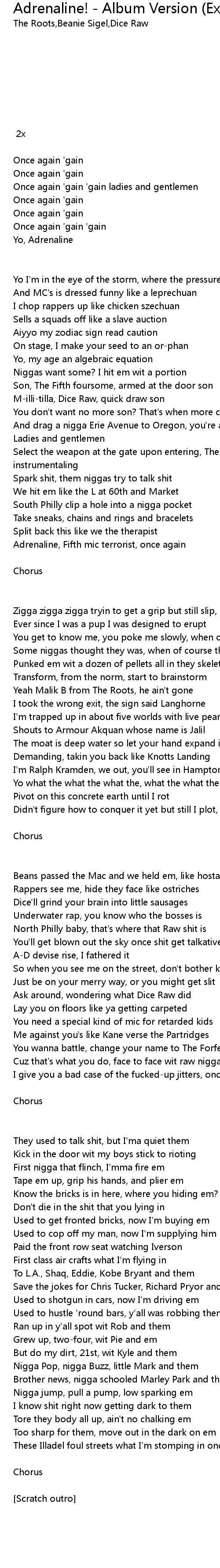 | [01:13.000] | Adrenaline, Fifth mic terrorist, once again |