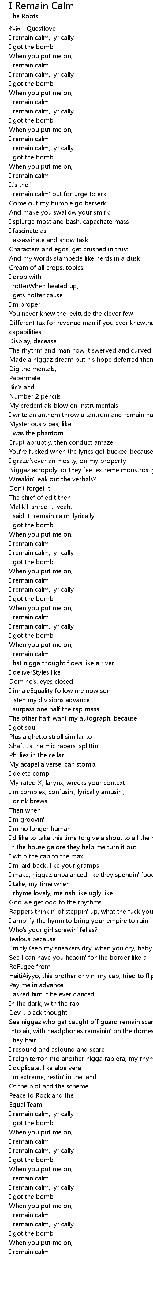 | I said itI remain calm, lyrically | |
