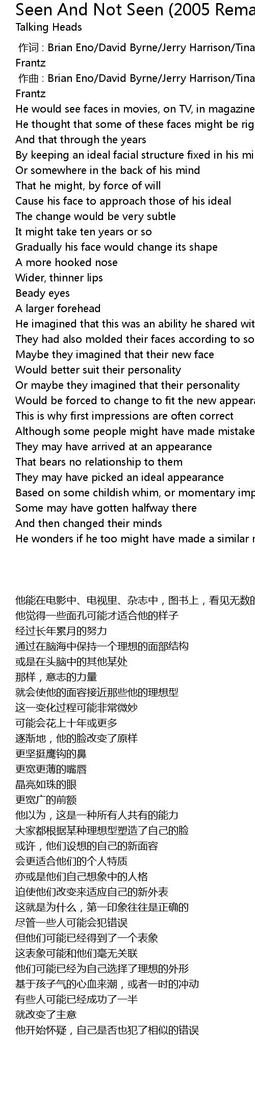 | [00:00.000] | zuò cí : Brian Eno David Byrne Jerry Harrison Tina Weymouth Chris Frantz |