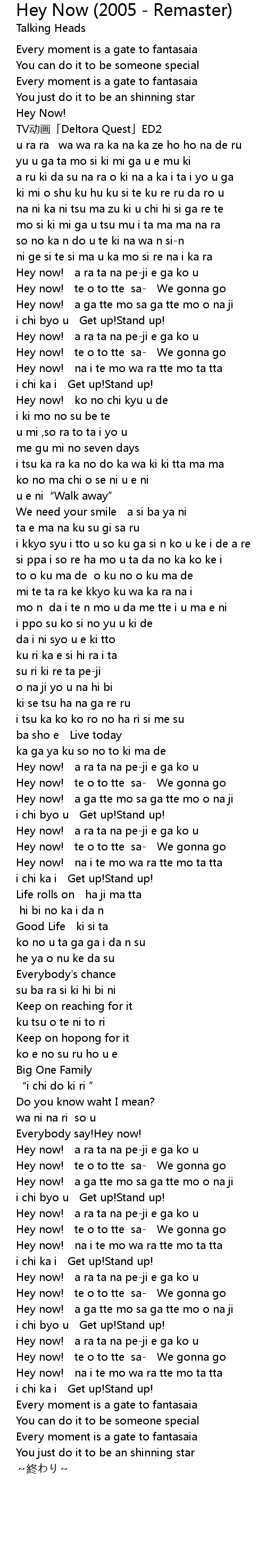 | Hey now! na i te mo wa ra tte mo ta tta | |