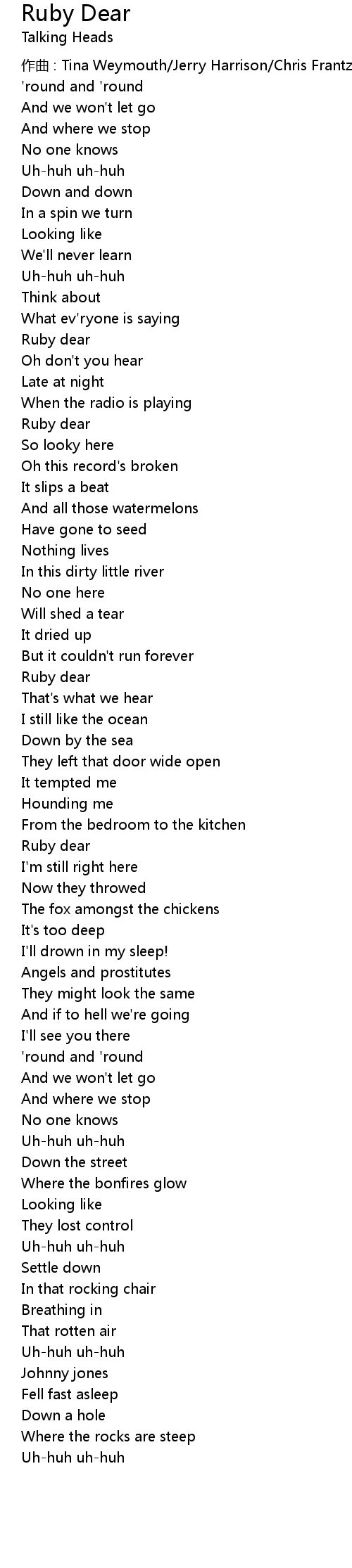 | 作曲 : Tina Weymouth/Jerry Harrison/Chris Frantz/David Byrne | |