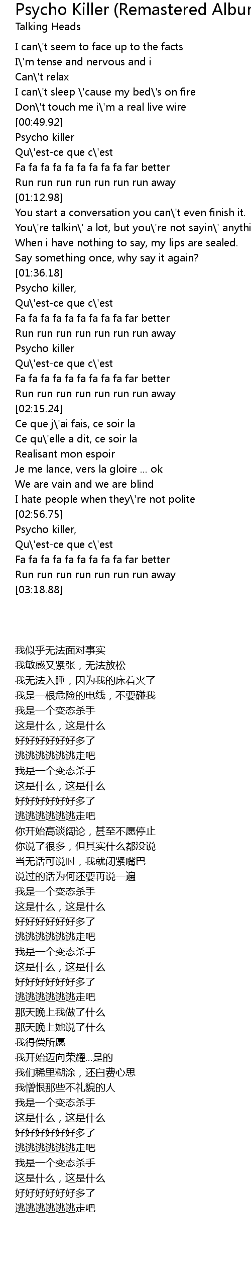 Psycho killer, |