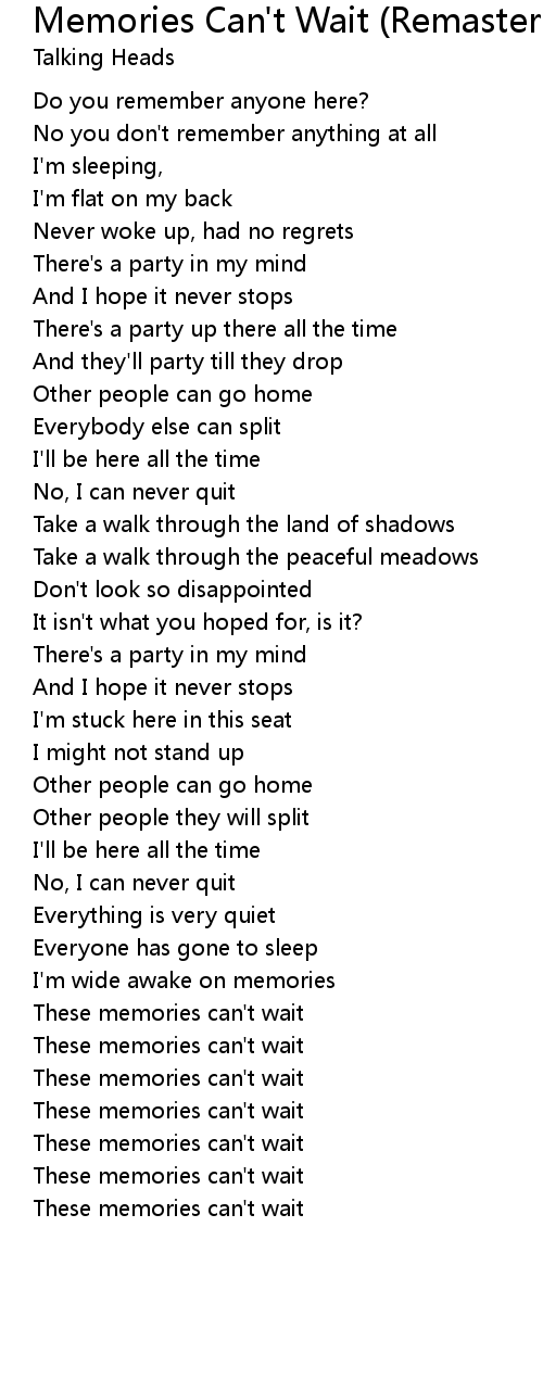 These memories can't wait |