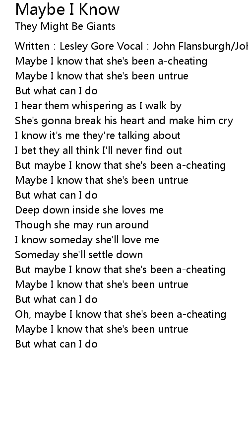 | But maybe I know that she's been a-cheating | |