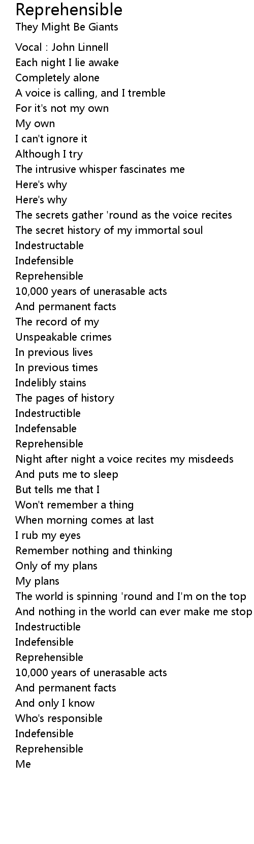 | Song | Reprehensible |