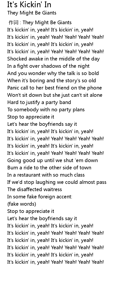 | [00:56.75] | It's kickin' in, yeah! It's kickin' in, yeah! |