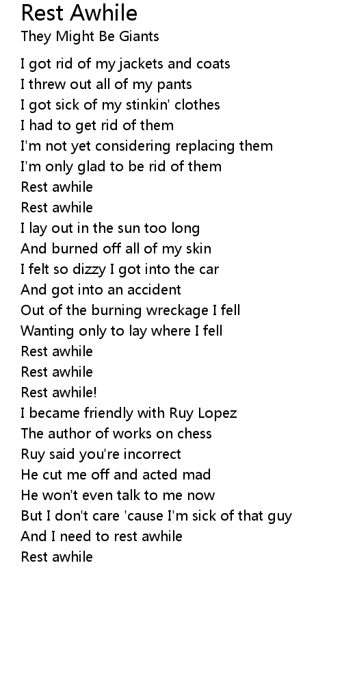 And I need to rest awhile |