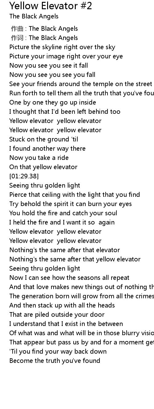 | [02:31.71] | Nothing' s the same after that yellow elevator |