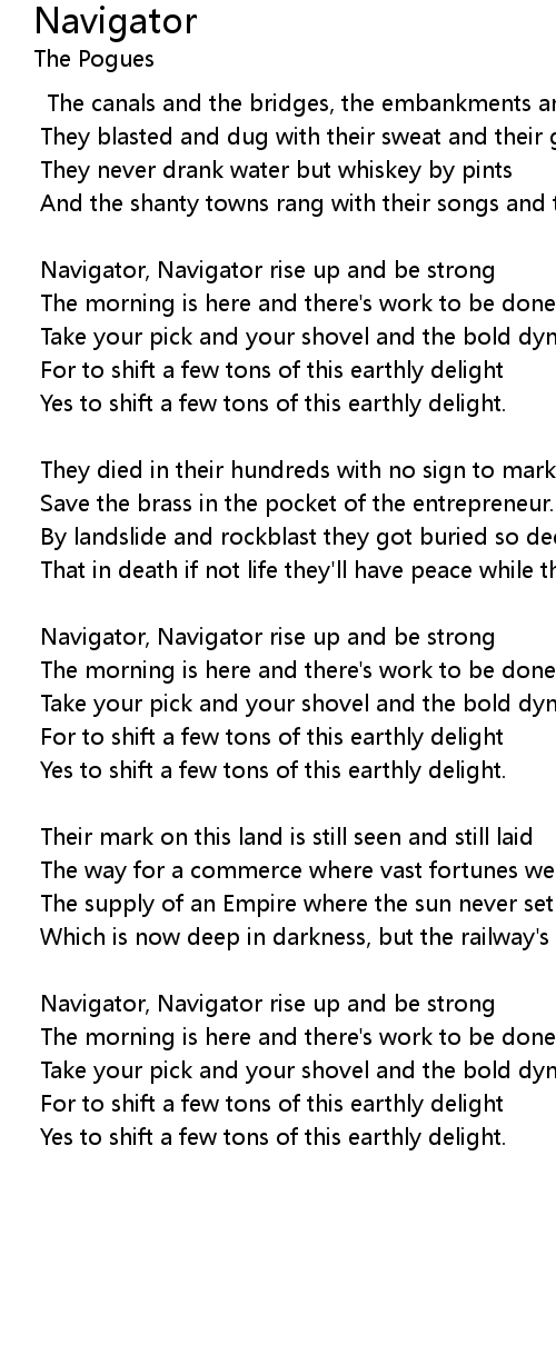 Navigator, Navigator rise up and be strong |
