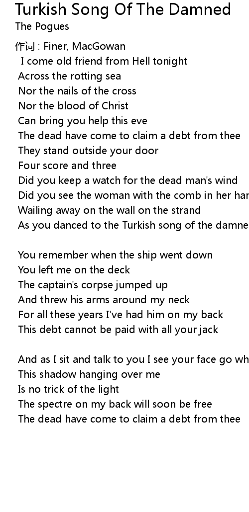 | Song | Turkish Song Of The Damned |