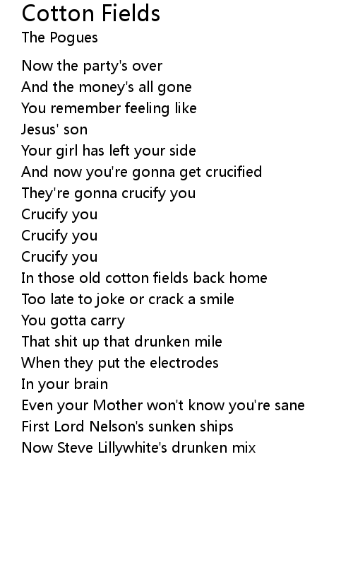 | Song | Cotton Fields |