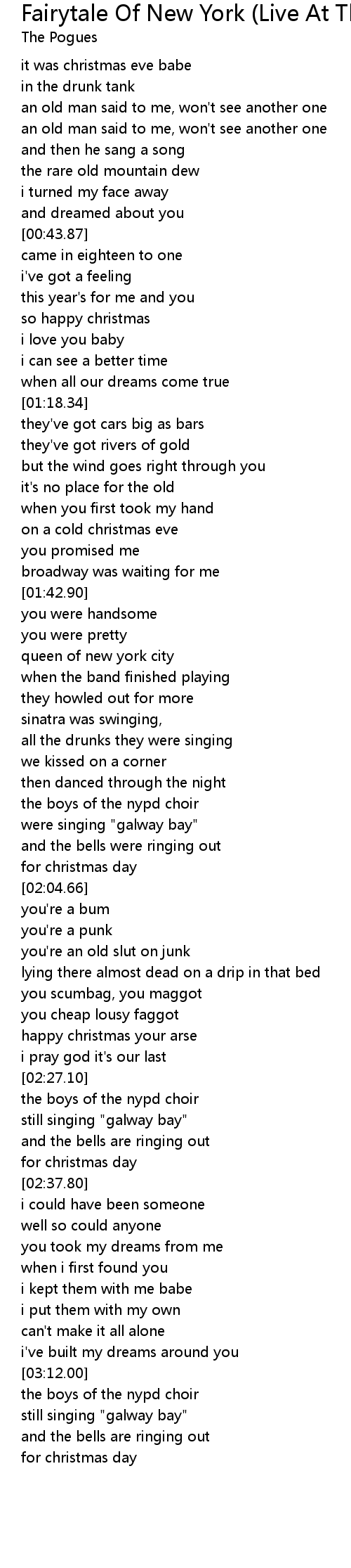 Fairytale Of New York (Live At The Brixton Academy, London 2001) Lyrics