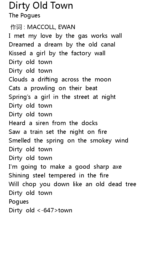 | [00:00.00] | 作词 : MACCOLL, EWAN |