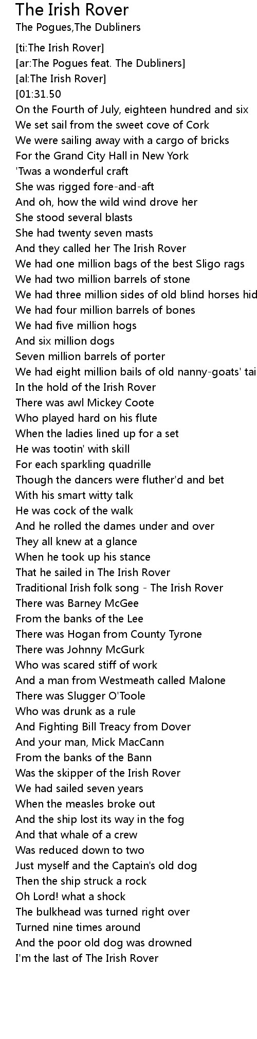 | [01:40.50] | Traditional Irish folk song The Irish Rover |