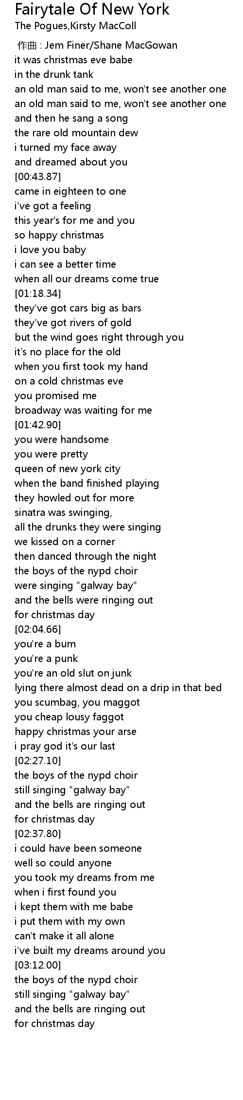 | [00:00.00] | 作曲 : Jem Finer/Shane MacGowan |