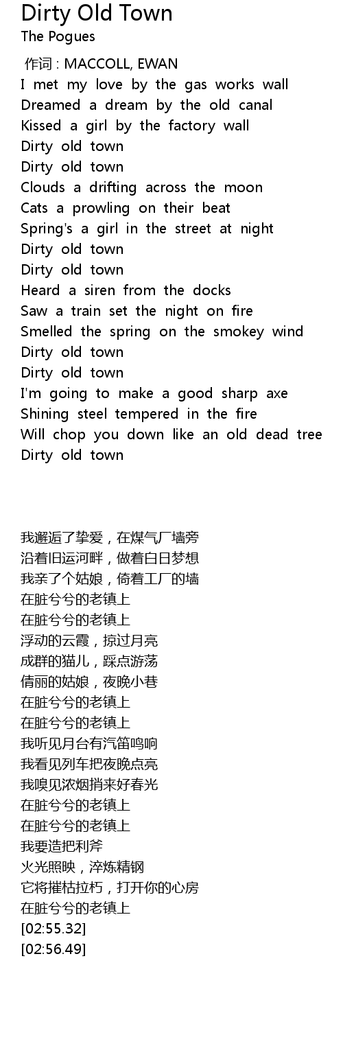 | [00:00.00] | 作词 : MACCOLL, EWAN |