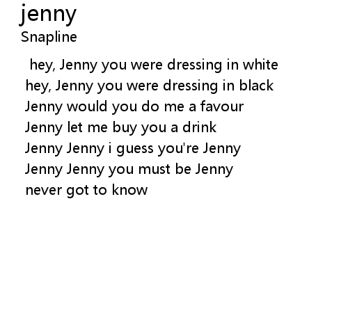 | Jenny Jenny i guess you're Jenny | |
