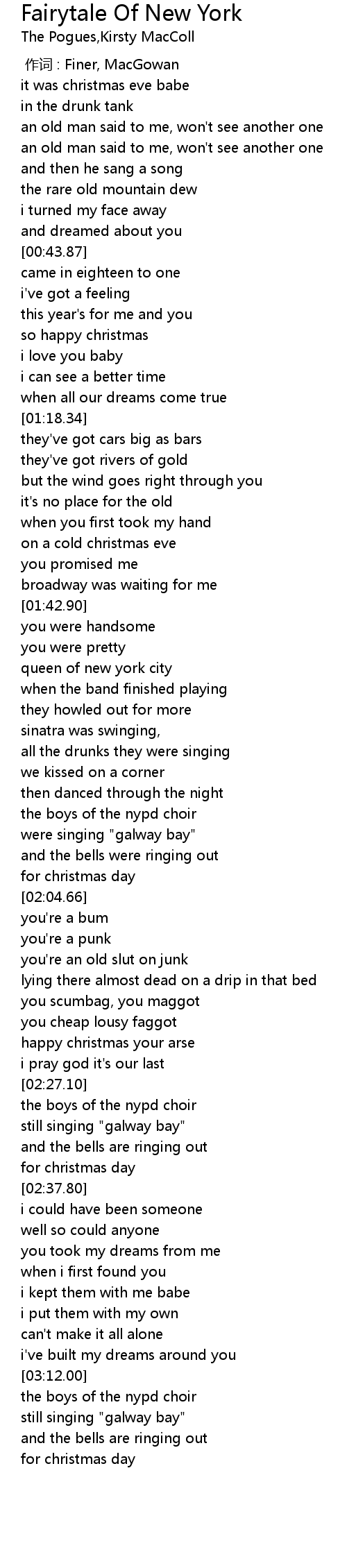 | [00:00.00] | 作词 : Finer, MacGowan |