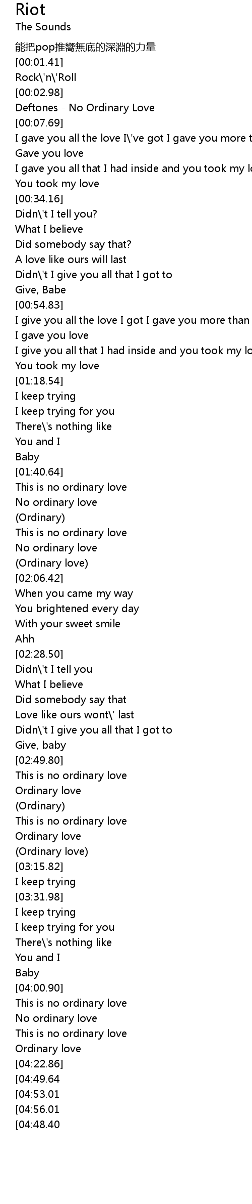 | [00:10.52] | I gave you all the love I\'ve got I gave you more than I could give |
