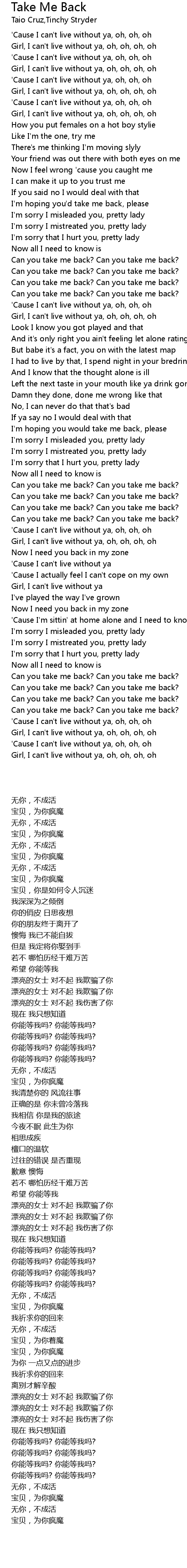 | [00:11.41] | Girl, I can't live without ya, oh, oh, oh, oh |