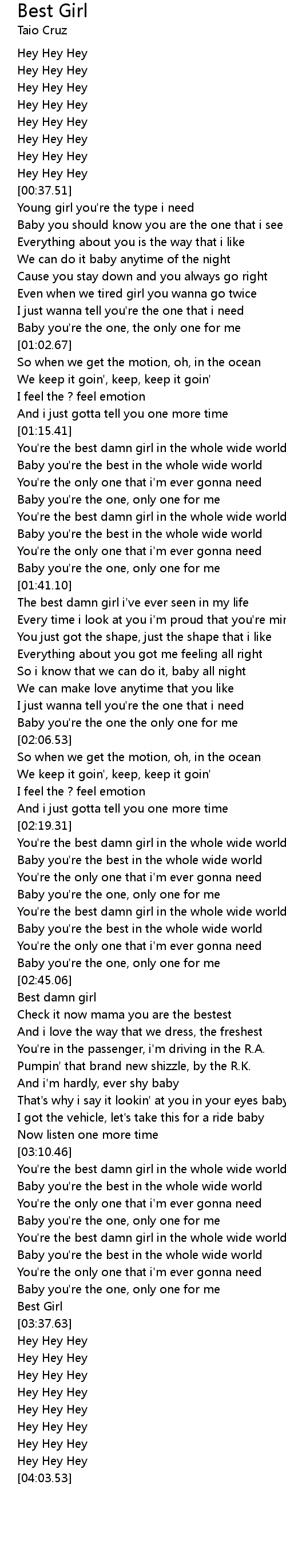 | [03:11.02] | You're the best damn girl in the whole wide world |