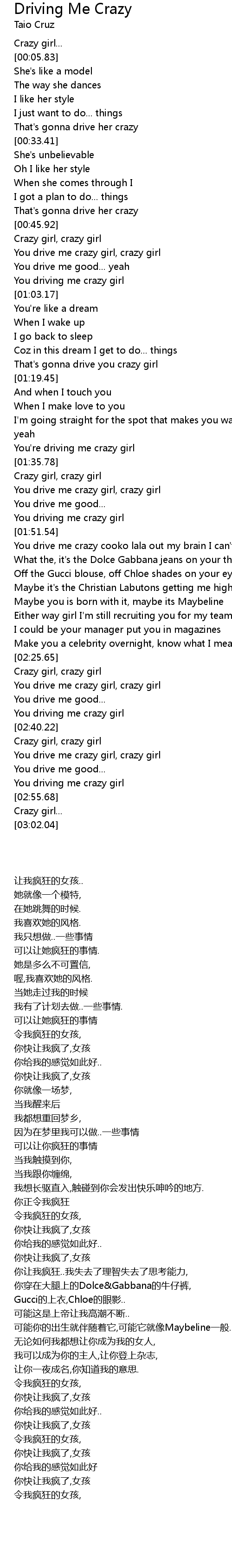 | [02:28.53] | You drive me crazy girl, crazy girl |